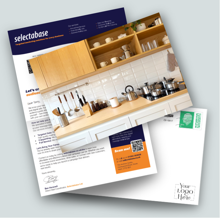 At Selectabase, we work with both independent kitchen studios and national suppliers running regional showroom campaigns. The strategy is simple. Focus tightly on your local catchment area, present professionally, and control your postage costs.